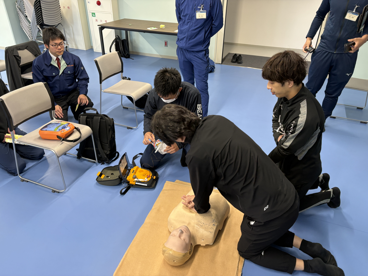 胸骨圧迫に取り組む様子